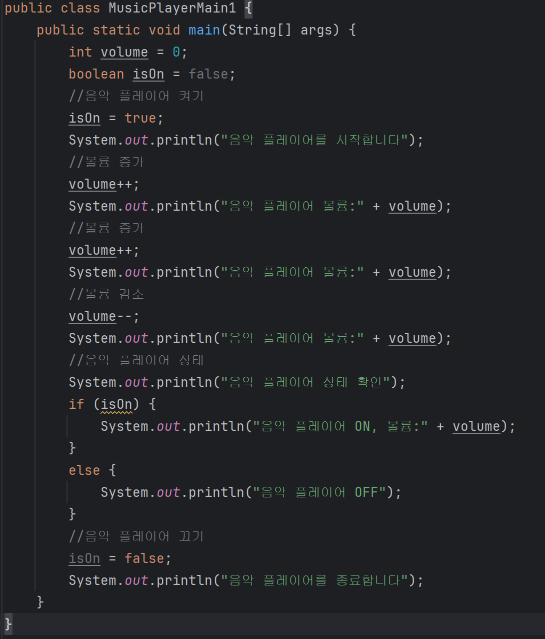 → 음악 플레이어가 어떤 속성(데이터), 어떤 기능(메서드)을 제공하는지에 초점을 맞춰 구성.